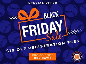 Looking for the perfect holiday gift? 🎁✨ From Nov 26 – Dec 3, take $10 OFF Spring Registration with promo code HOLIDAY10! Baseball gear fits under the tree… but a whole season of fun is even better. ⚾❤️
