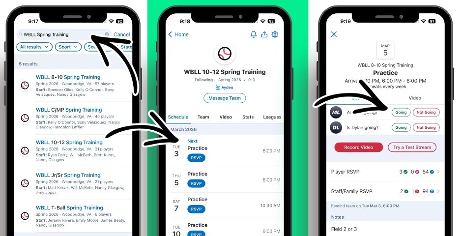 Search "WBLL Spring Training"